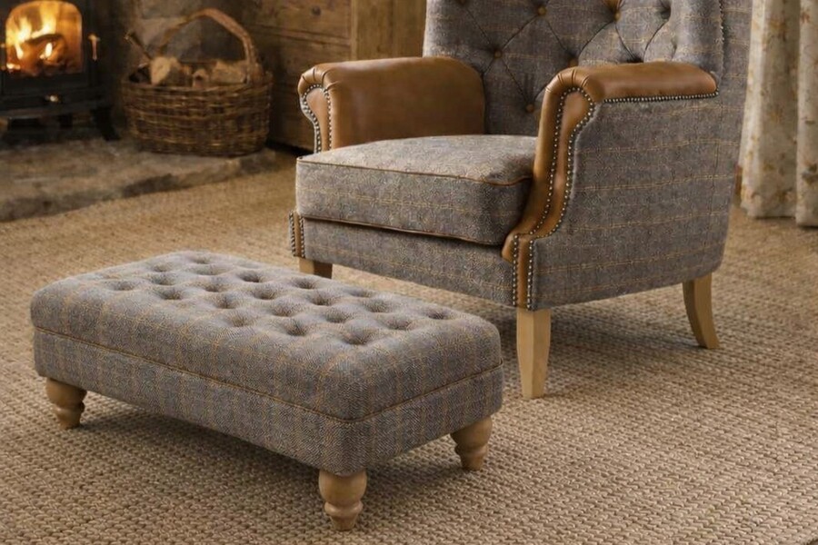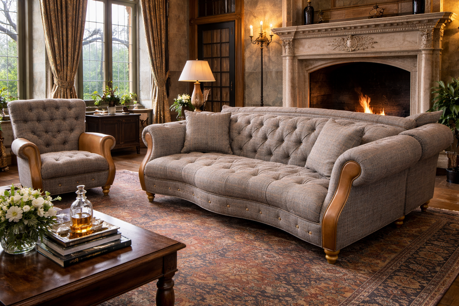 Harrington Tweed Wool CollectionElevate your living space with the enduring charm of the Harrington Tweed Wool Collection—a masterclass in British-inspired design. Upholstered in richly textured, heritage-grade tweed wool, each piece in the collection brings warmth, character, and refined comfort to your home.Built on solid hardwood frames for lasting durability, the collection showcases deep button tufting and classic silhouettes that nod to timeless tradition while offering modern sophistication. Hand-worked leather accents add depth and craftsmanship, enhancing each piece with a tactile contrast and a bespoke finish.From stately armchairs to luxurious sofas, the Harrington Collection combines heirloom-quality materials with a design ethos that never goes out of style. Perfect for those who appreciate understated elegance and artisan detail.Key Features:Premium tweed wool upholsterySolid kiln-dried hardwood framesDeep button tufting for timeless style