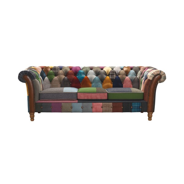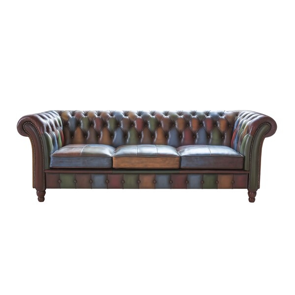 Home vintage 3 seater sofas Dickinson Large 2.5 Str Sofa - In Patchwork & Tan Leather With Mid Oak Legs