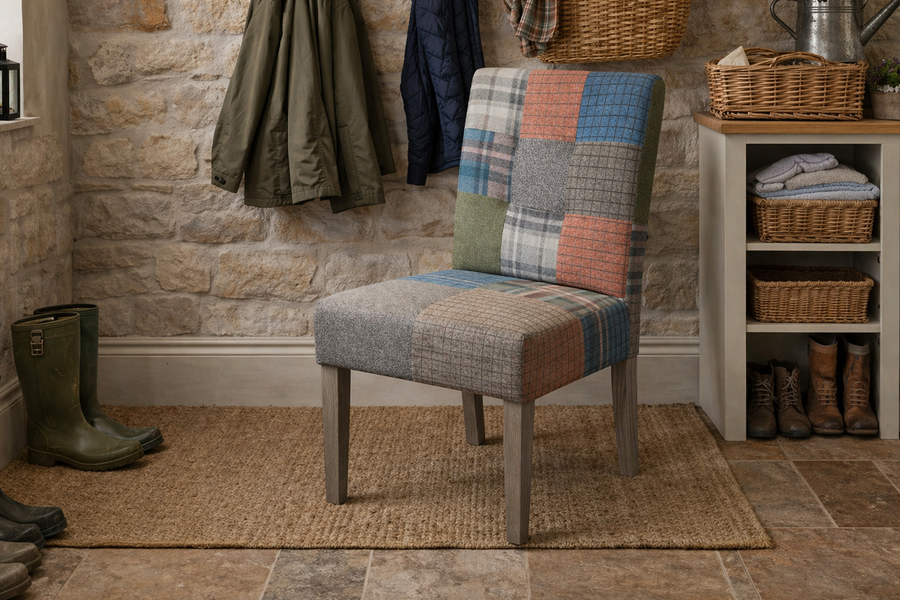 Home carlton dining chairs Stanton Chair Patchwork Grey Oiled Legs (stock Line) - Moq 2pcs