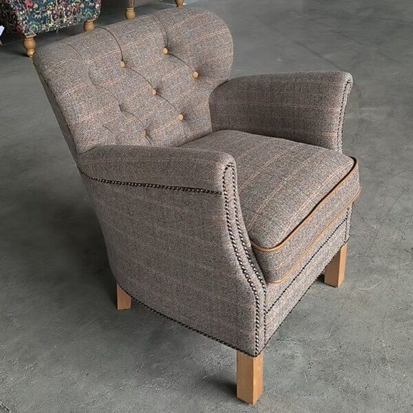Harrington Tweed Wool CollectionElevate your living space with the enduring charm of the Harrington Tweed Wool Collection—a masterclass in British-inspired design. Upholstered in richly textured, heritage-grade tweed wool, each piece in the collection brings warmth, character, and refined comfort to your home.Built on solid hardwood frames for lasting durability, the collection showcases deep button tufting and classic silhouettes that nod to timeless tradition while offering modern sophistication. Hand-worked leather accents add depth and craftsmanship, enhancing each piece with a tactile contrast and a bespoke finish.From stately armchairs to luxurious sofas, the Harrington Collection combines heirloom-quality materials with a design ethos that never goes out of style. Perfect for those who appreciate understated elegance and artisan detail.Key Features:Premium tweed wool upholsterySolid kiln-dried hardwood framesDeep button tufting for timeless style